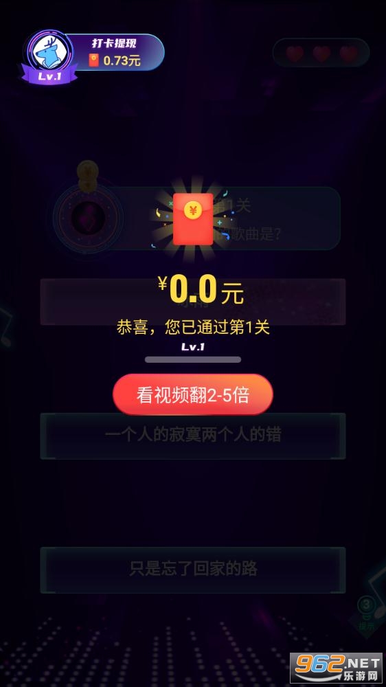 一款能轻松赚钱的平台,玩家不但可以听到海量音乐,还能通过猜歌名的游戏方式来赚红包,关卡多,奖励好,喜欢就来962体验体验吧!