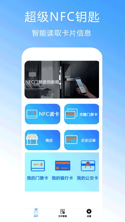 超级nfc钥匙app是一款可以使用nfc来备份各种卡数据的软件,让用户们使用起来更加的方便,在这里能够快速的来读取卡的数据,这样就可以只需要带一个手机即可使用各种卡的功能,感兴趣的朋友们快来下载体验吧!