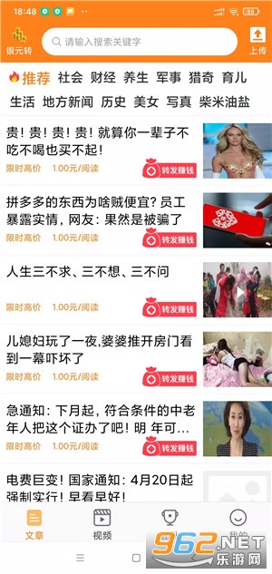 《银元转app》给用户们带来了一款文章转发赚钱平台,这里有海量文章等着大家前来转发,同时银元转还有收徒奖励,让用户们每天都能在这里撸一点红包,享受到优质的赚钱福利,下面就是小编为大家带来的软件下载地址!