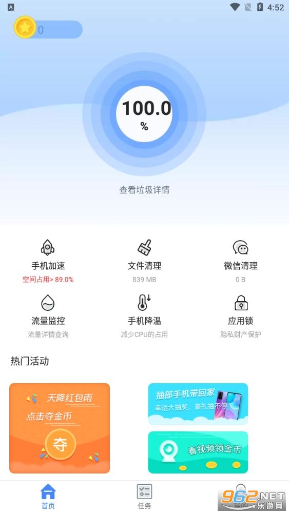 《极速清理手机专家app》是一款非常给力专业的垃圾清理软件,这款软件功能很多,使用起来也很简单,只需要一键就可以清理手机中的任何垃圾,而且不需要任何费用,操作也方便,感兴趣的朋友还在等什么?欢迎来962下载体验试试吧!