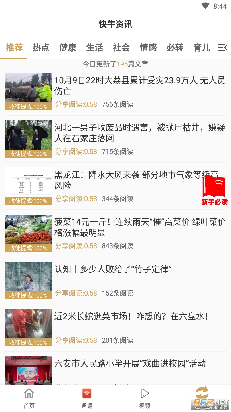 2、注册登录时记得填写快牛资讯邀请码:会有1元新人奖励,转发文字单价0.58元/阅读,三天后(12号)平台开启高单价活动