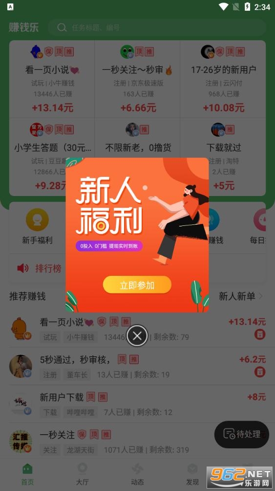 赚钱乐是一款超级简单好用的手机在线任务型网赚软件,这里有着各种非常不错的网赚任务可以自由选择,无任何门槛的,不需要大家抵押担保任何物品操作简单打开软件就可以轻松赚钱来了,而且佣金都是非常可观的还可以一元极速提现,有兴趣的朋友不妨下载试试哦!