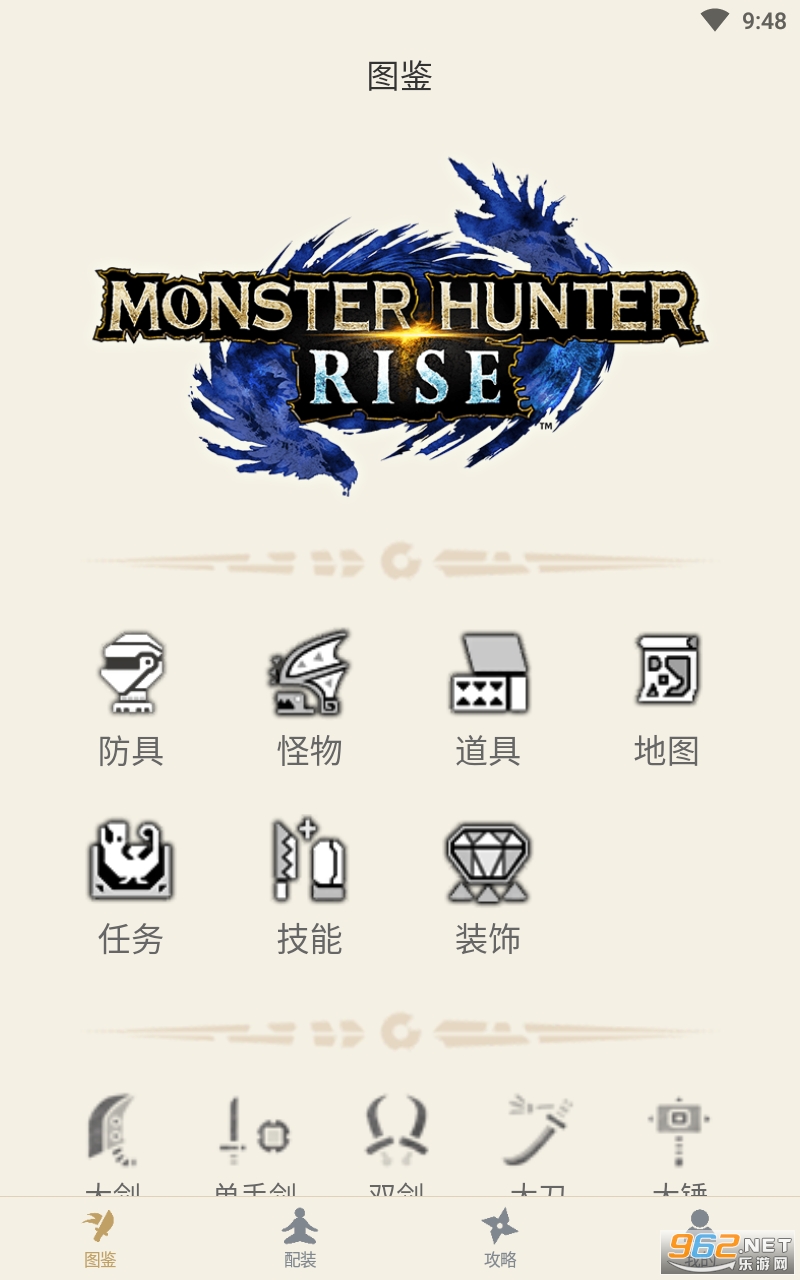 这里有全面的游戏数据,武器数据、防具数据、怪物数据、道具数据、地图数据、任务数据、技能数据、装饰数据,还有配装器哦~