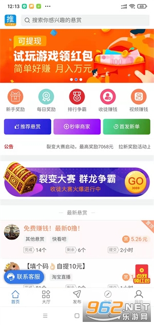 2、若填写推客帮邀请码:4005588还可以随机红包,拿着手机做赏金任务,在家躺着也赚钱