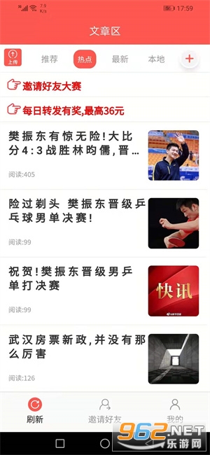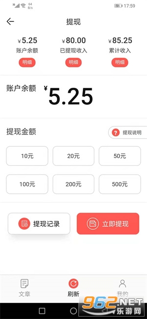 2、登陆成功即可秒提0.3元,然后点击“文章”频道任选一篇文章转发到,转发被点击阅读的次数越多,赚的也就越多