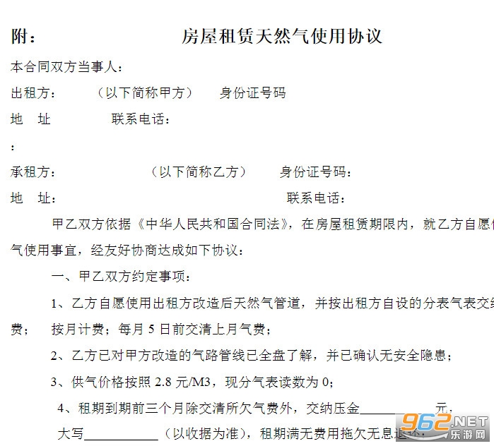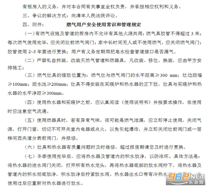 4、租期到期前三个月除交清所欠气费外,交纳压金