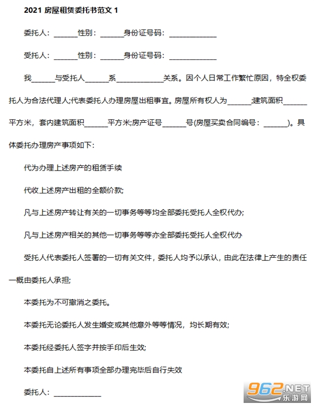 三、甲乙双方商定的委托期以房屋租出为准。签订委托时,甲方需向乙方出示该房屋的合法有效产权凭证、房主本人的身份证等正本。由代理人签订本委托书,应出示代理人身份证原件和房屋产权人的书面授权书。该授权书是本委托书不可分割的一部分。