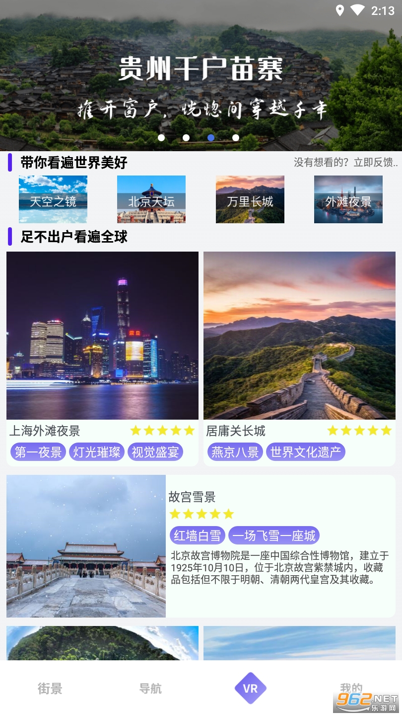 VR全景:VR模式让您360°身临其境,即使足不出户看遍全球,也能看遍世界美好。