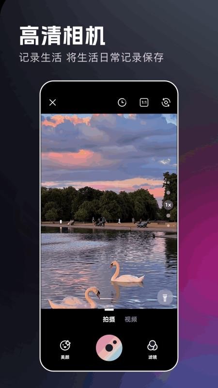 1、智能美颜拍摄:内置专业级美颜相机,可一键拍摄高清人像照片,智能优化肤色与细节,提升成像质感。