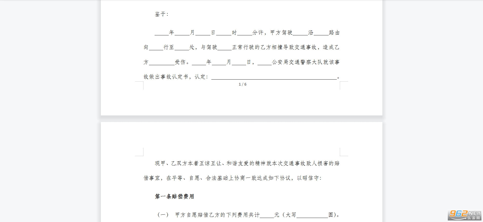 《交通事故致人残疾赔偿协议》在现代社会中各种各样的机动车辆方便了我们的生活也带来了一定的危险。在交通事故中可能出现不同程度的损伤,需要通过协商等手段来获得相应的赔偿。下面为大家带来交通事故致人残疾赔偿协议。