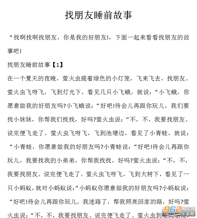 《找朋友睡前故事范文》是小编在网上收集到的三篇不用风格的关于找朋友故事题目的范文,都是篇幅非常短的童话故事,作为睡前的读物是非常不错的,故事内容也很有趣很丰富,感兴趣的亲们赶紧下载吧。