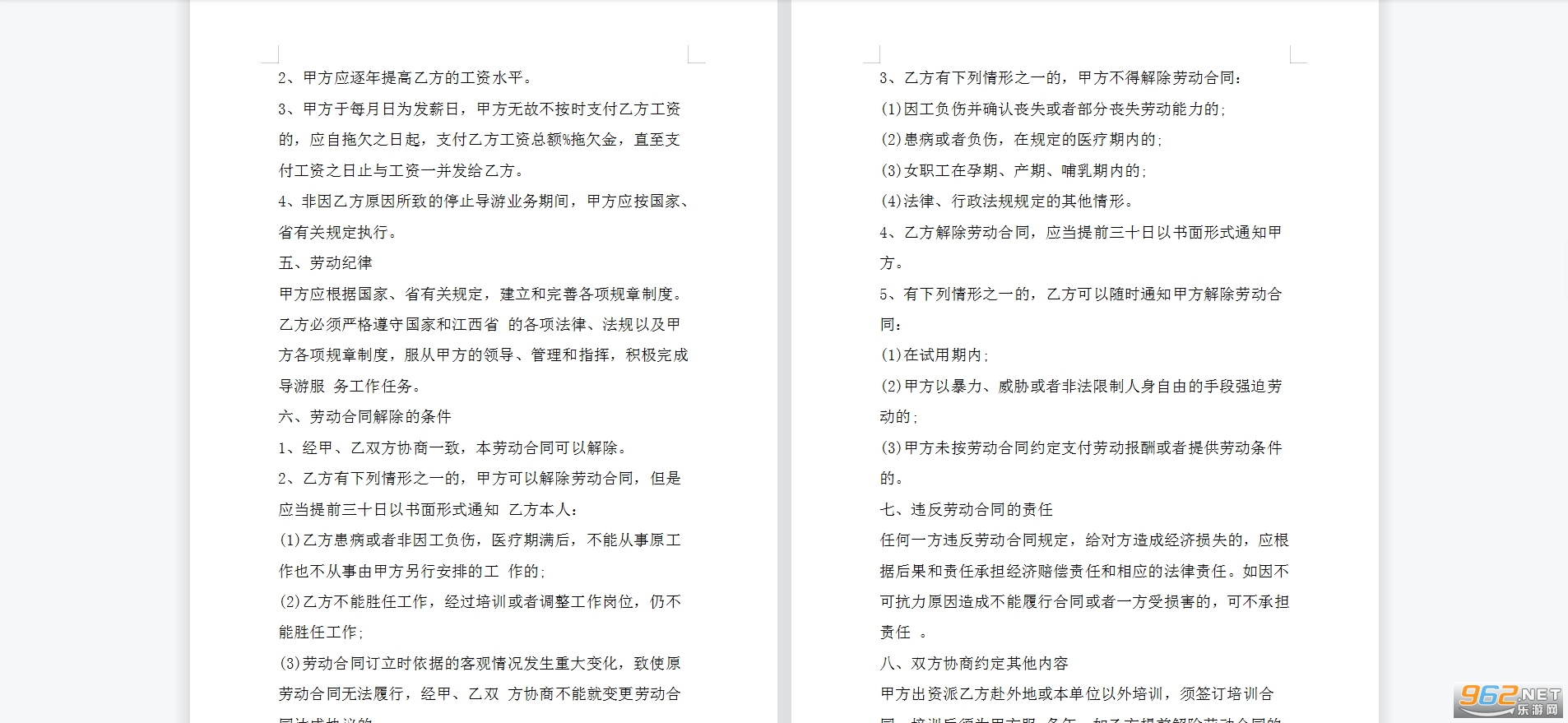 2、甲方应按国家、省有关规定对乙方进行培训教育,乙方从事导游服务时必须经过专门培 训并取得导游员资格。