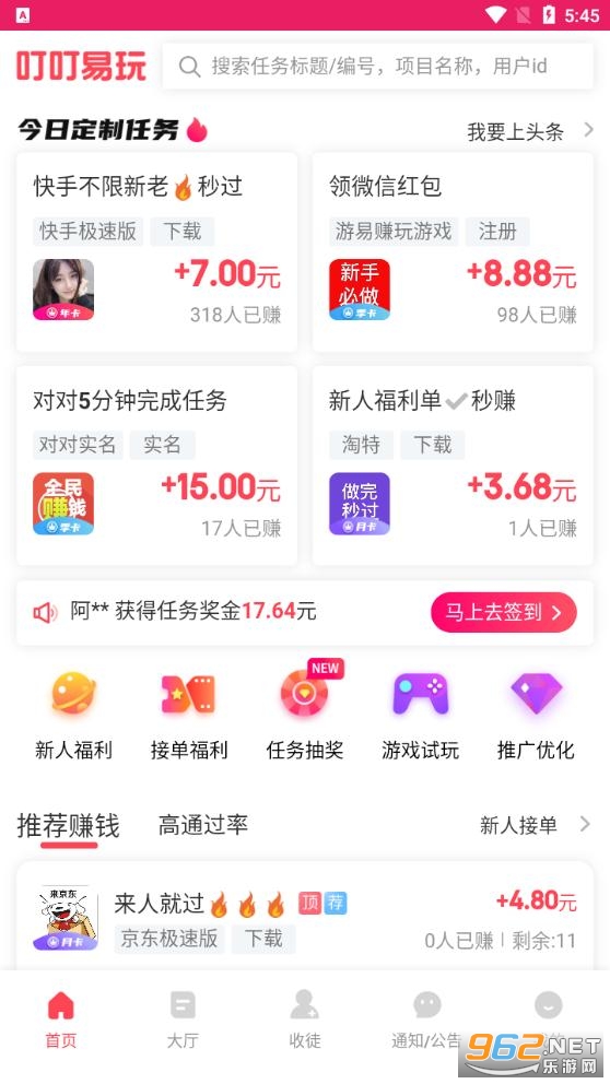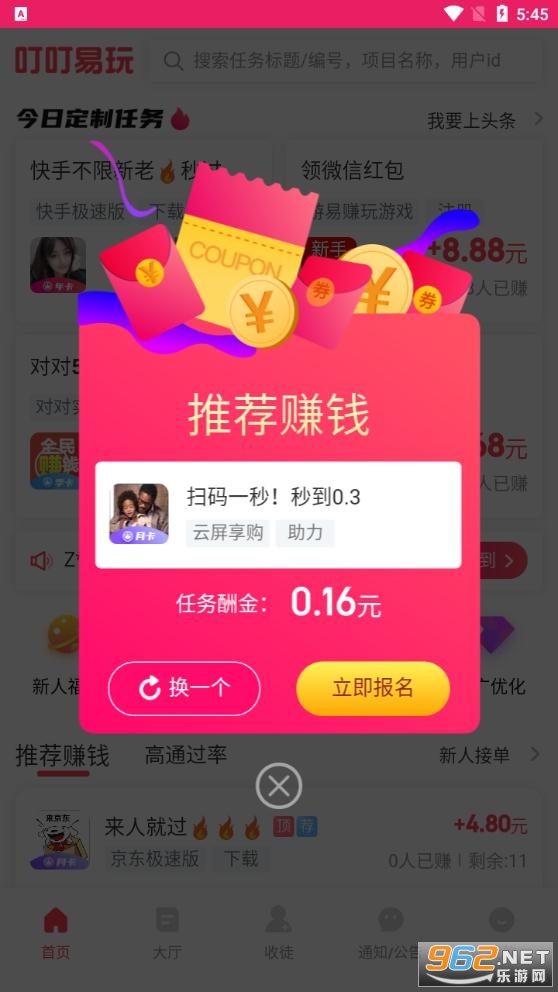 《叮叮易玩app》是一款非常给力的手机试玩赚钱平台,简单的赚钱方式方法,完成每天的赚钱任务即可,福利多,奖励好,提现轻松,感兴趣的朋友还在等什么?快来962下载体验体验吧!