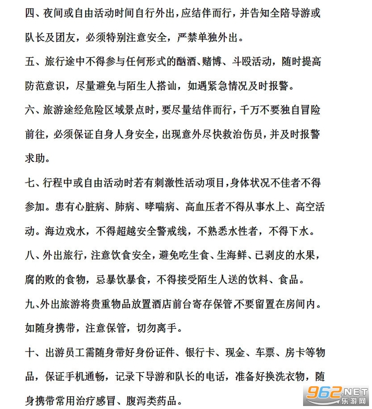 四、自由活动时间,应结伴而行,必须特别注意安全,严禁单独外出。