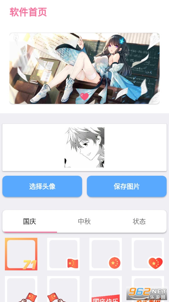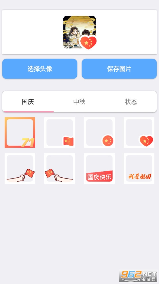 一款头像加框美化的制作软件,马上就是中秋和国庆节了,第一时间给大家安排上国庆中秋头像框,软件操作简单,只需选择你要制作的头像然后保存即可~