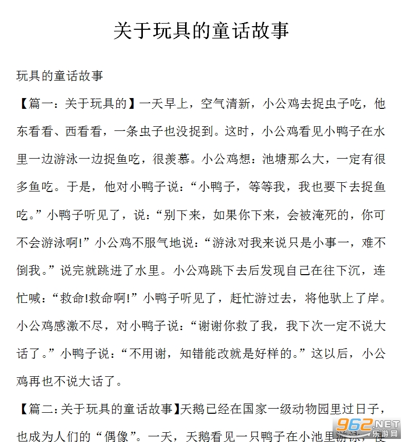 《玩具的童话故事》是小编在网上收集到的一篇非常不错额关于玩具的童话故事范本,里面有着5篇不同的童话故事,篇幅都不是很出场不过看起来很有趣,而且有着各自的寓意,感兴趣的亲们赶紧下载吧。