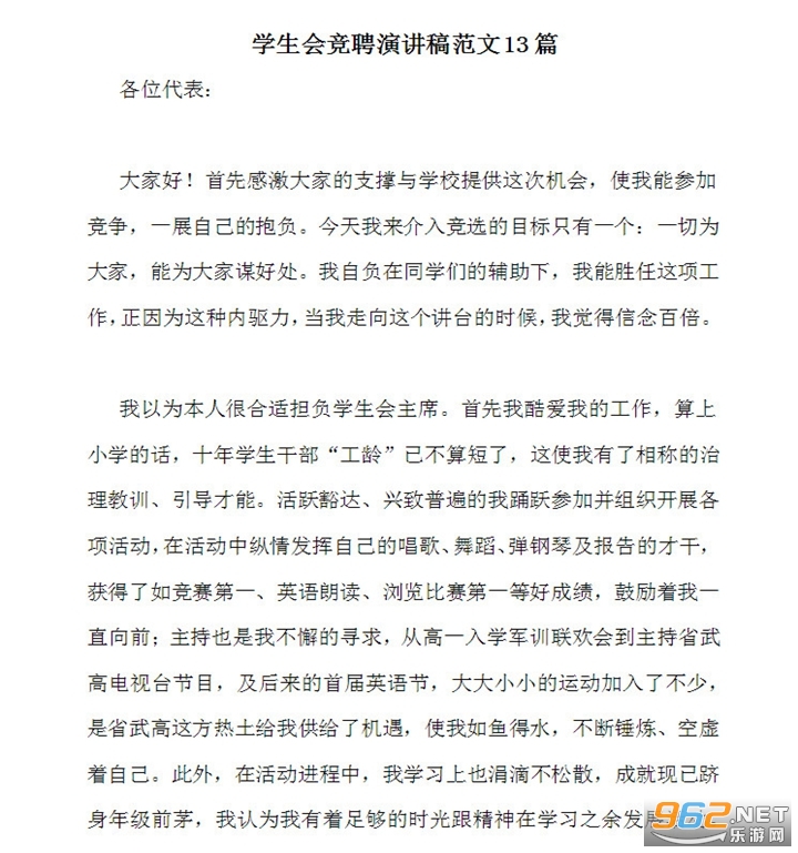 《学生会竞聘演讲稿范文》:在当今社会现代化的不断发展和变革的新时代当中,演讲往往成为了我们最大表达优势所在,尤其是在大学学校的生活其中,如何写一份恰当的学生会竞选演讲稿呢?下面是小编为大家整理的大学学生会竞选演讲稿,共13篇,欢迎大家下载使用!