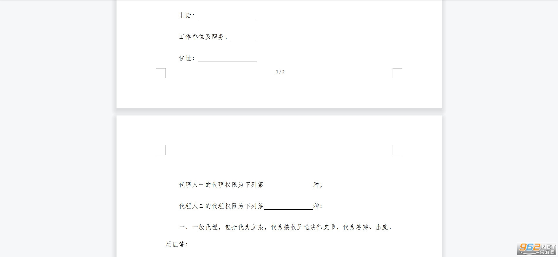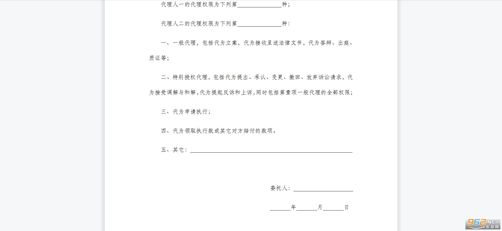 二、特别授权代理,包括代为提出、承认、变更、撤回、放弃诉讼请求,代为接受调解与和解,代为提起反诉和上诉,同时包括第壹项一般代理的全部权限;