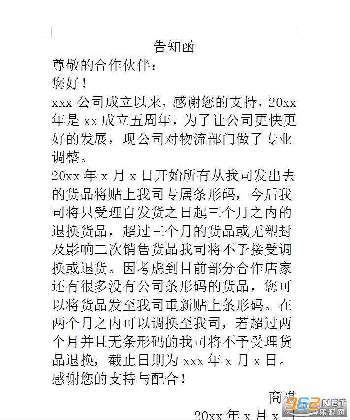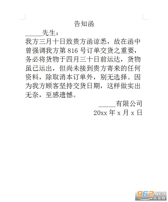告知函模板