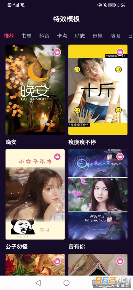 一款非常好用的视频剪辑制作软件,能够制作出抖音、快手当中的热门短视频,提供了轻动融图、多图宫格、广告、快手热门等分类的特效模板,在使用的过程中仅需替换背景图片和音乐就能拥有炫酷的短视频了~