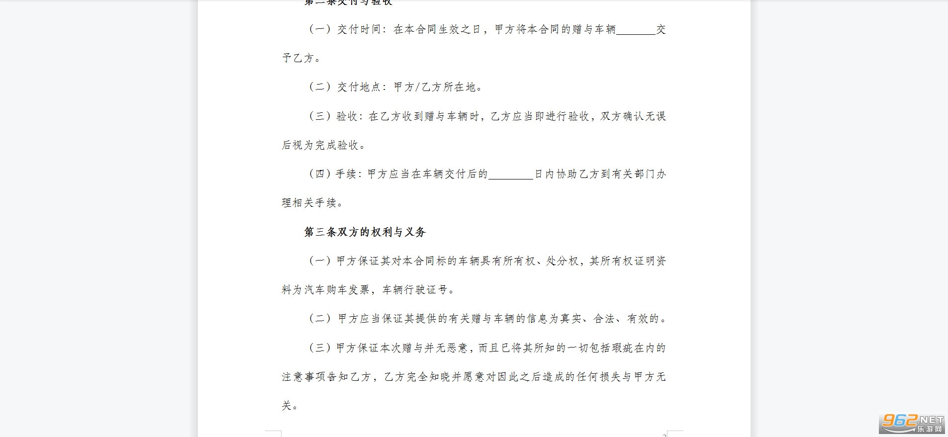 (四)甲方有义务协助乙方办理赠与车辆的过户等有关手续。