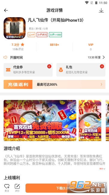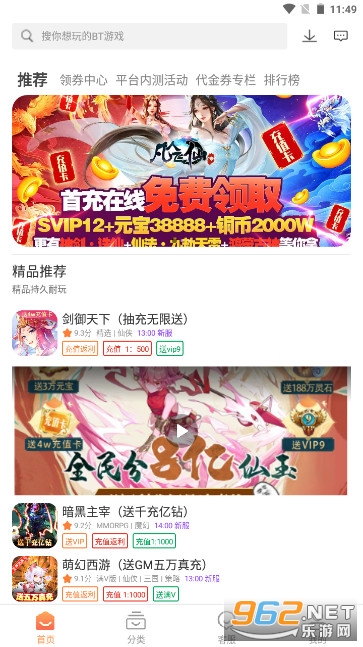 2、超热门BT手游平台,上线满vip满钻,不花钱也玩的爽