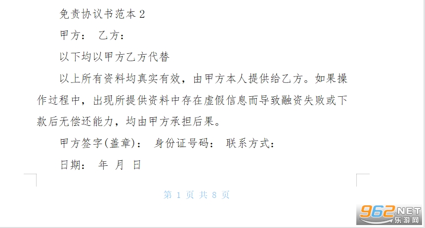 二、关于豁免责任,放弃权利和赔偿的协议内容: