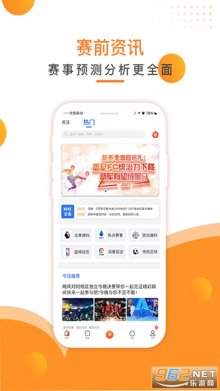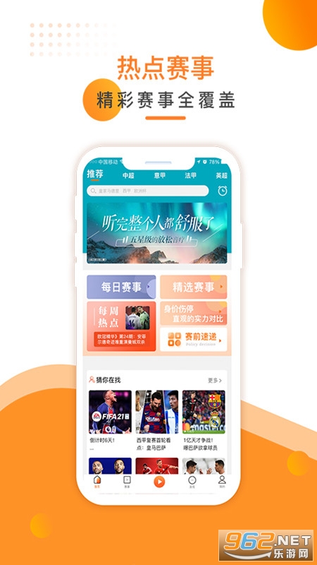 1、精彩赛事:英超联赛、意甲联赛、中超联赛、法甲联赛、日职联、澳超、英冠、挪威超、瑞典超、感受精彩足球盛宴。