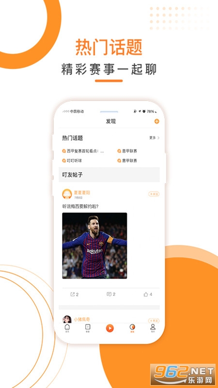 3、热门话题:大咖分享球迷互动专区,随时随地和来自全国各地的球迷分享最新足球比赛信息球员动态。