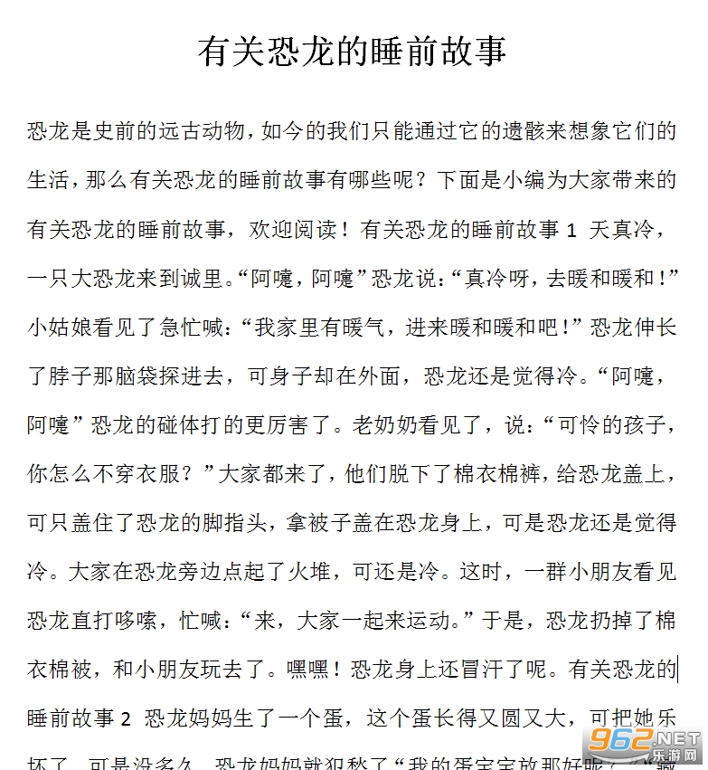 《有关恐龙的睡前故事》是小编在网上收集到的一篇不错的关于宝宝睡前故事的文章,故事篇幅不是很长属于短篇的故事,是一个很温馨的故事,而且给宝宝讲睡前故事也是不错的哦,感兴趣的亲们赶紧下载吧。