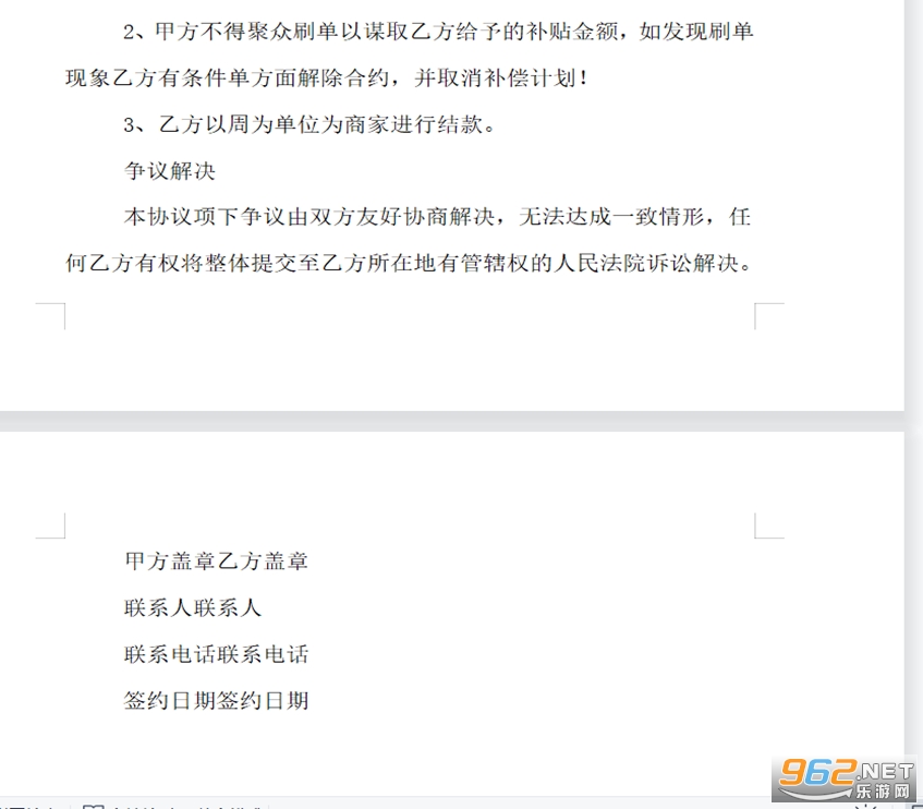 4.乙方在使用甲方平台中,应保证每月成交30单以上,否则甲方有权将乙方下线。