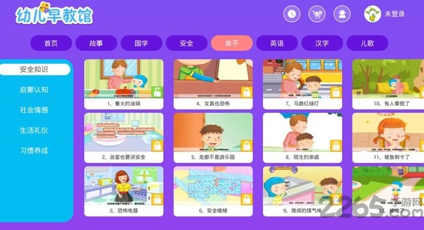 2、切换至少儿板块选择亲子乐园,进入安全知识页面。