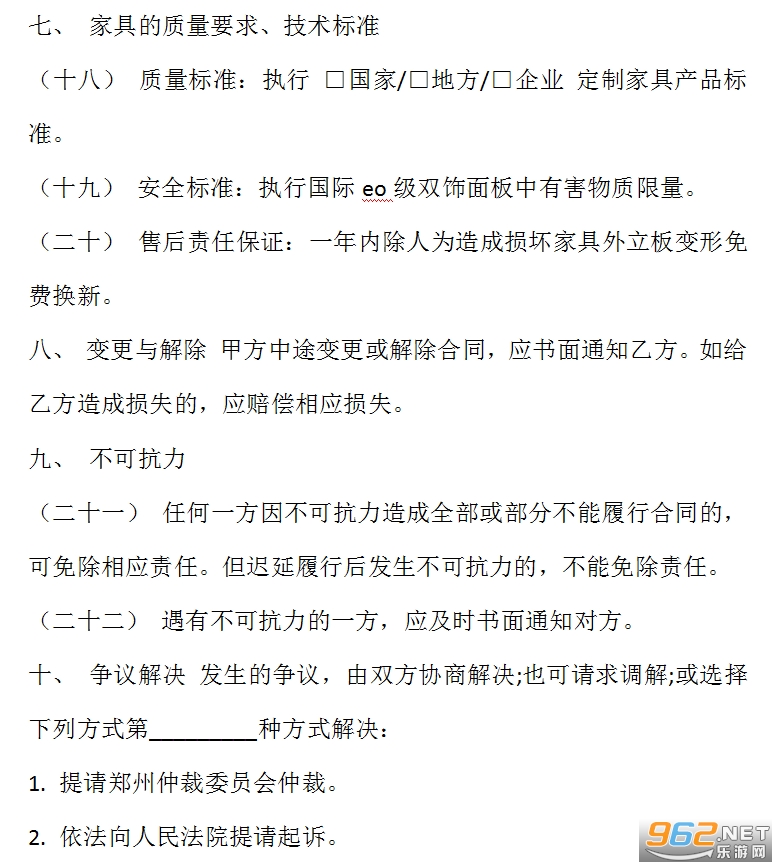(十)甲方应及时接收家具,并进行检验。