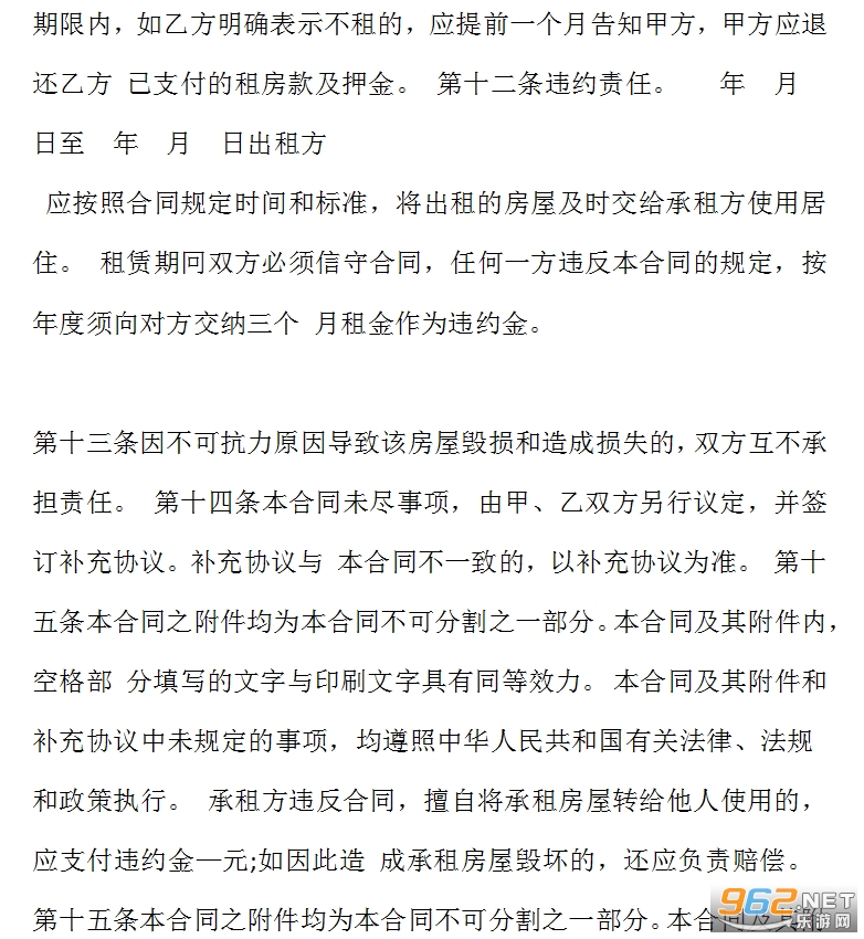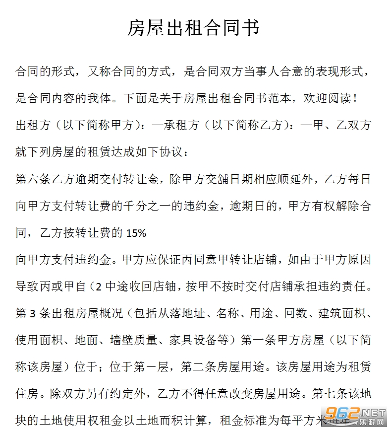 《房屋出租合同范本》是一款用起来非常不错的房屋出租的合同,也是小编在网上找到的评价不错的范本内容,不过没有进行排版,且范本内容仅供参考,不可以直接用来使用哦,感兴趣的亲们赶紧下载吧。