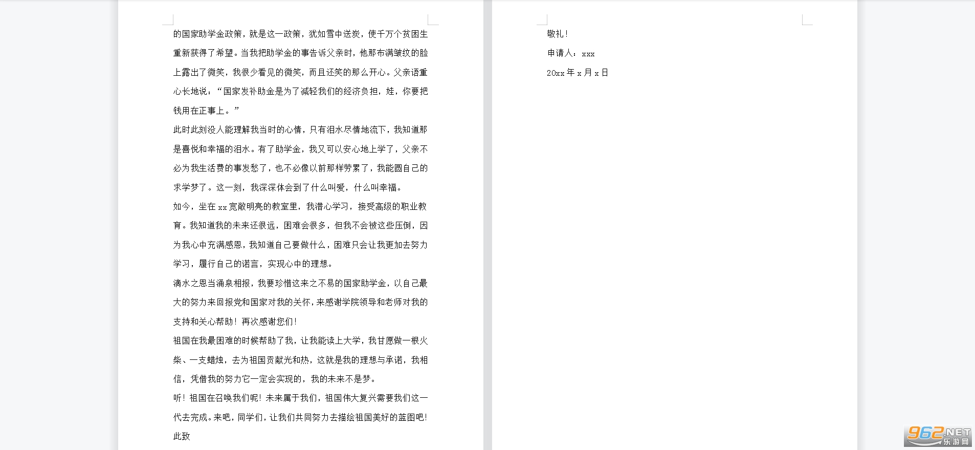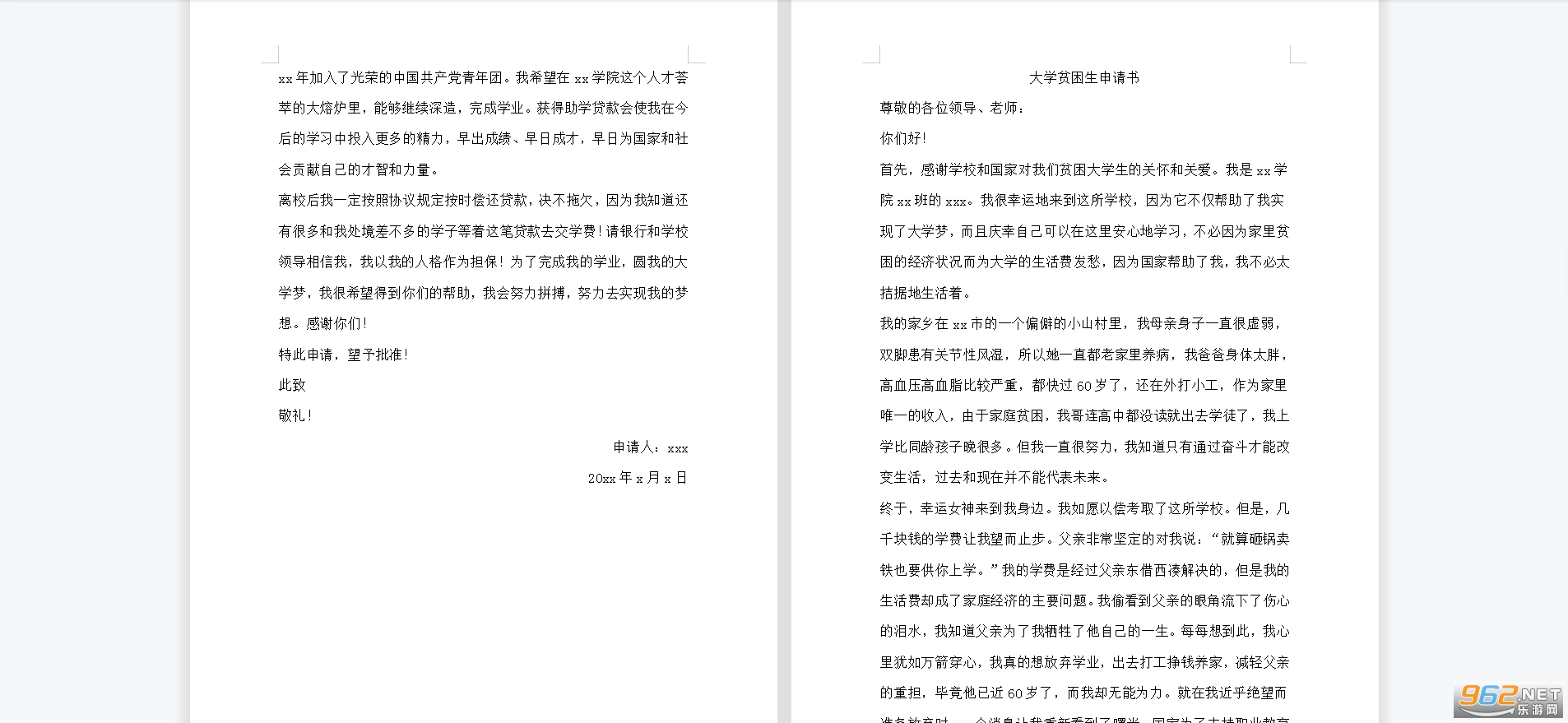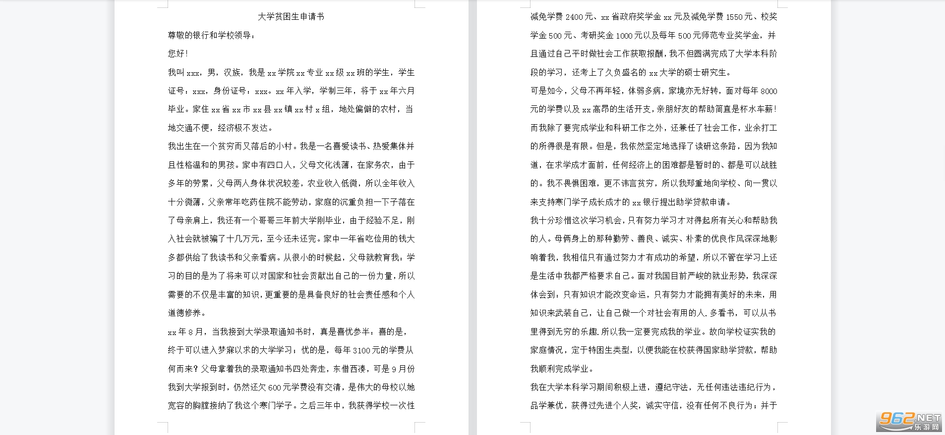 贫困生申请书模板
