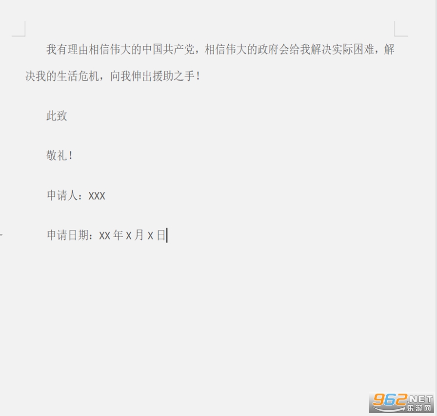 我有理由相信伟大的中国共产党,相信伟大的政府会给我解决实际困难,解决我的生活危机,向我伸出援助之手!