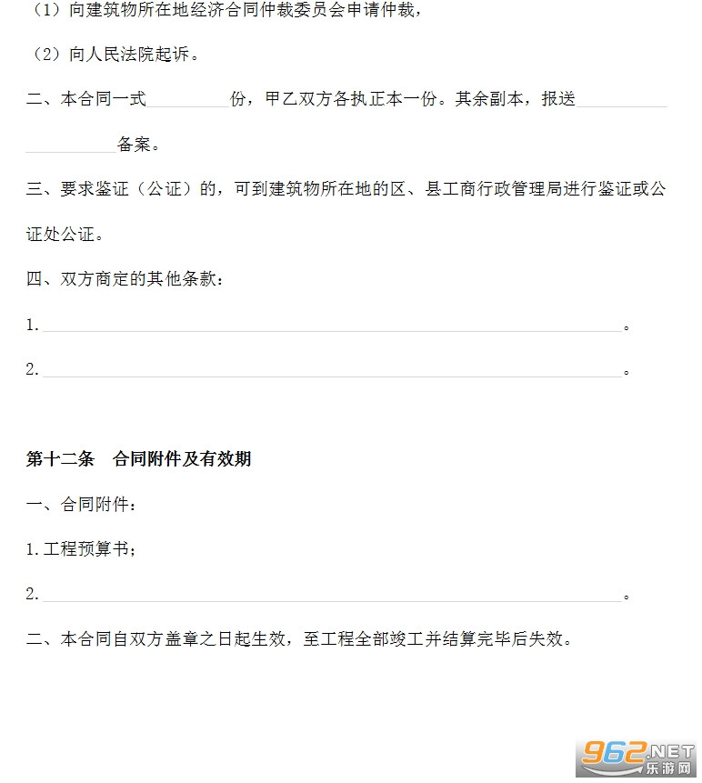三、在施工过程中,乙方因违反消防条例和法规造成的火灾事故,由乙方负责。