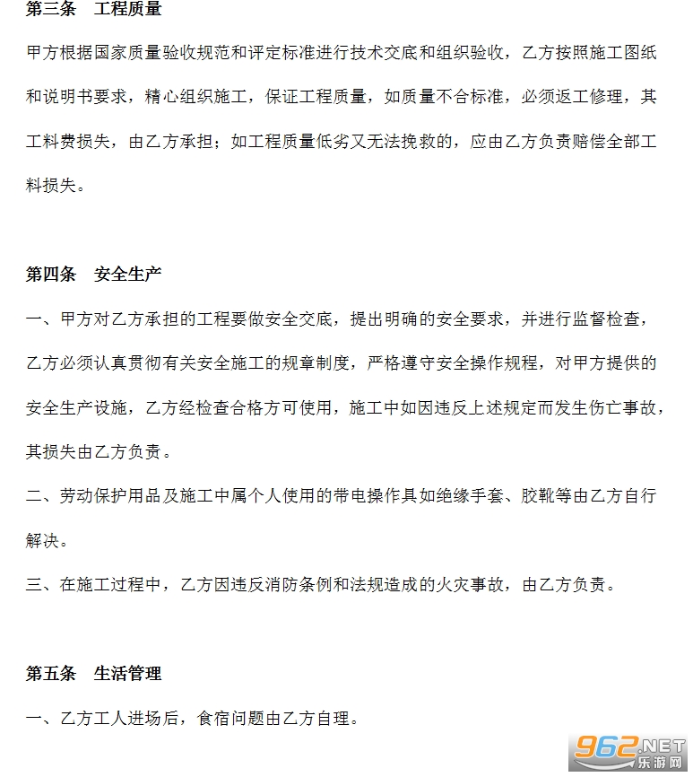 一、乙方工人进场后,食宿问题由乙方自理。