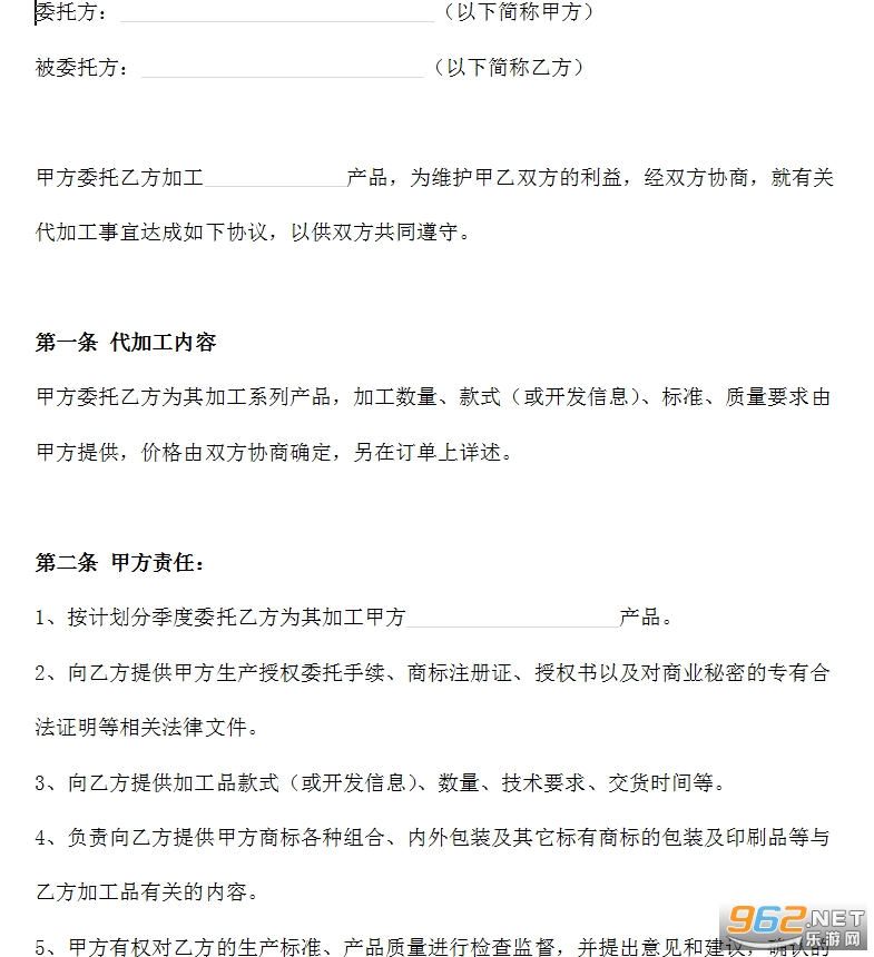《代加工合同范本》是小编在网上收集到的一篇比较不错的代加工合同的范本内容,内容严谨,条理清晰排版也非常的清楚,直接下载即可,合同范本仅供参考不可以直接使用,感兴趣的亲们赶紧下载吧。