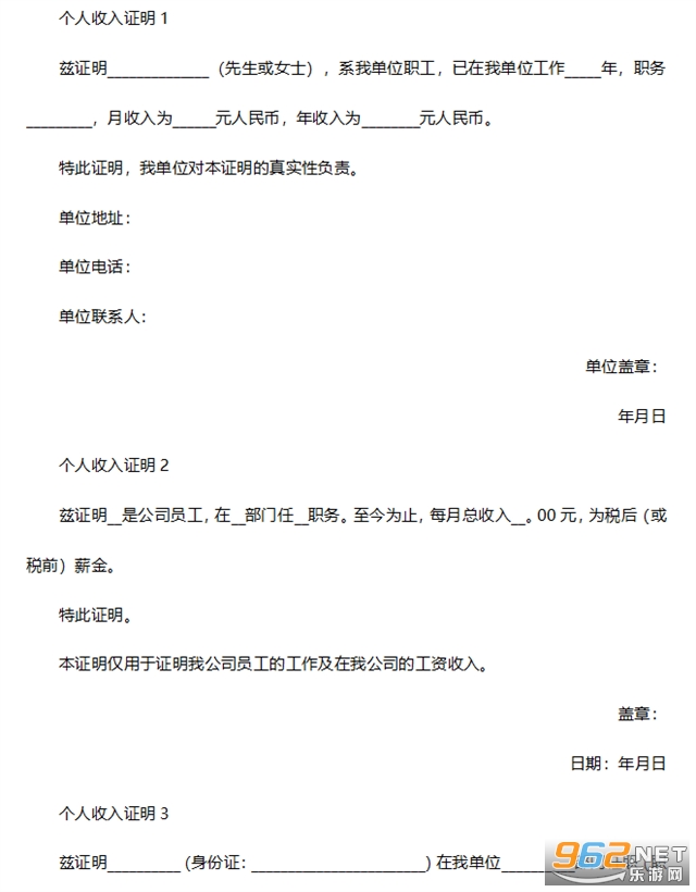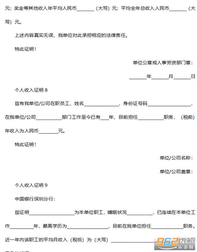 《个人收入证明范本》中为大家带来10份个人收入证明模板范本,可以直接下载电子版的调整下格式就能直接打印了。一般收入证明主要用在贷款、签证等方面来用来证明当事人的收入问题。