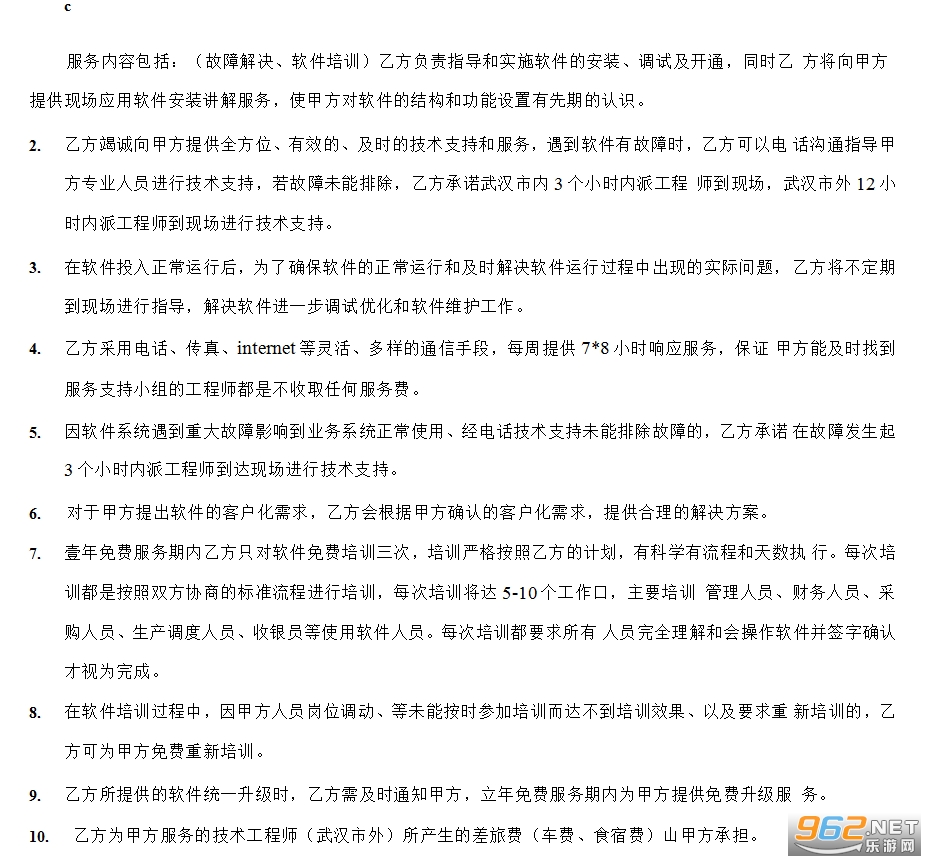 3、培训:是指乙方为甲方提供软件使用的培训服务。