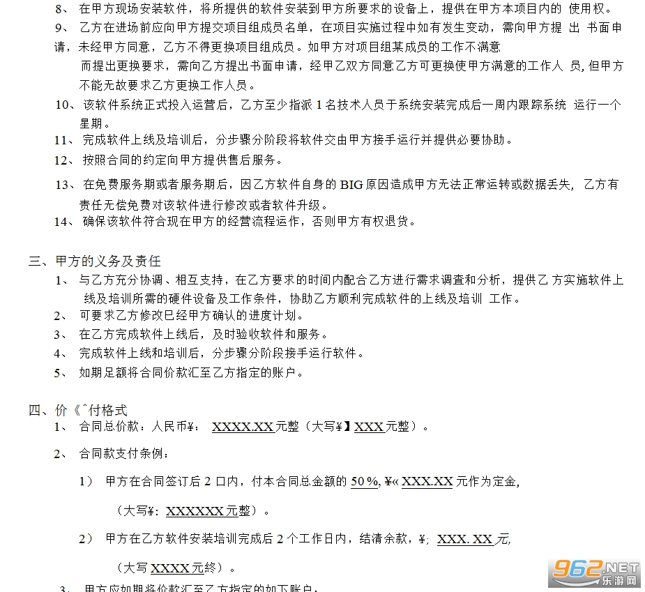 二、乙方的义务及责任