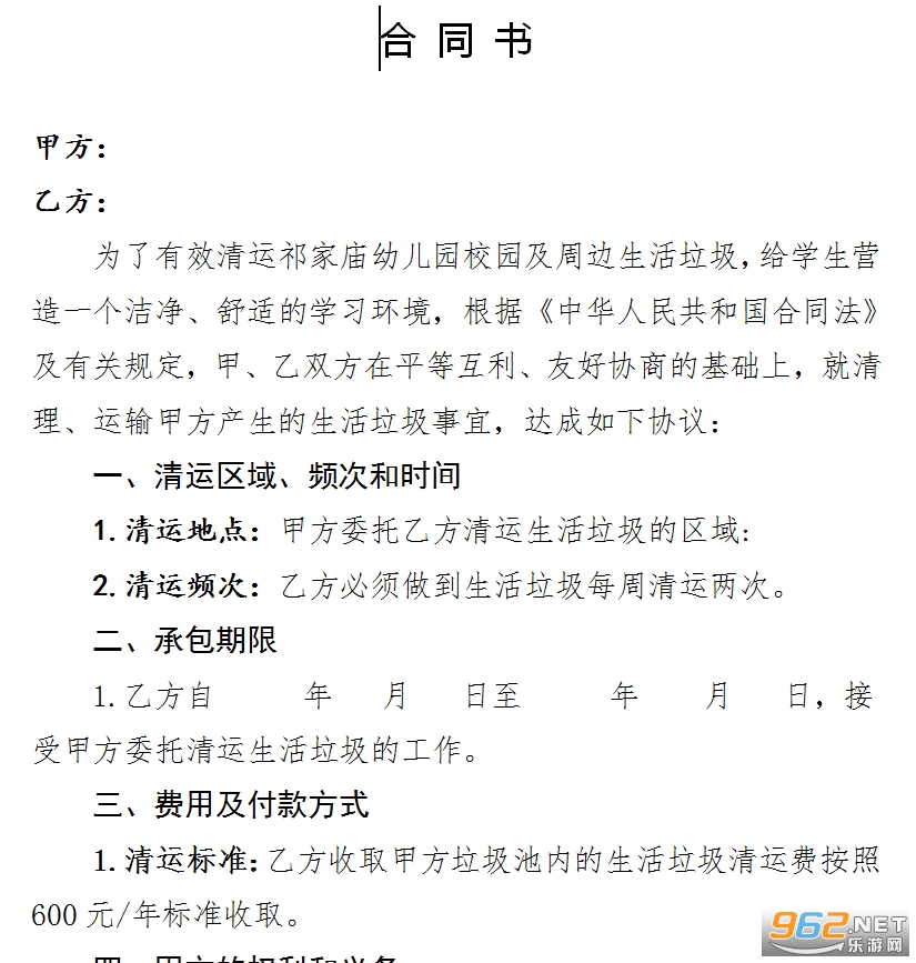 《垃圾清运合同书范本》是小编在网上收集到的一篇不错的关于垃圾清运合同书的范本内容,里面的条理还是非常的清晰的,当然用起来的感觉也十分的不错,当然仅仅用作参考不可直接使用哦,感兴趣的亲们赶紧下载吧。