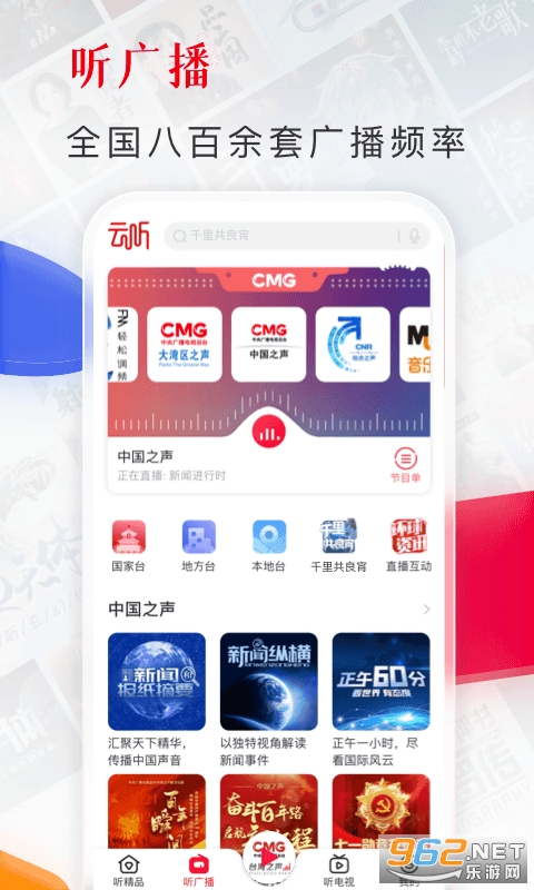 云听,一般又称中国广播app,央广云听app。 一站听新闻、听电台、听热门影视剧原著,