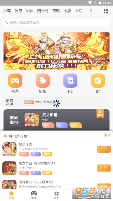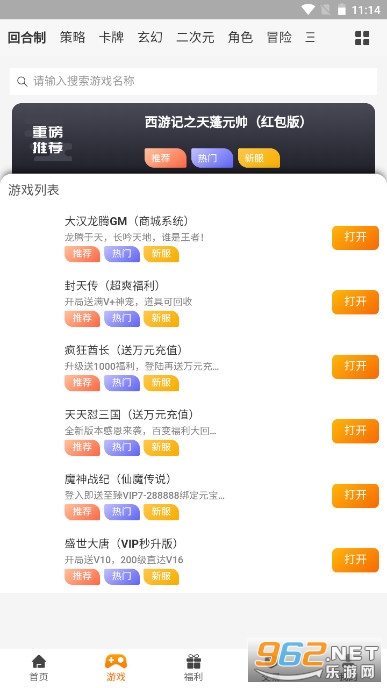 2、软件上提供了传奇、仙侠、回合制等多种类型的游戏,无聊时刻可以畅玩一番;