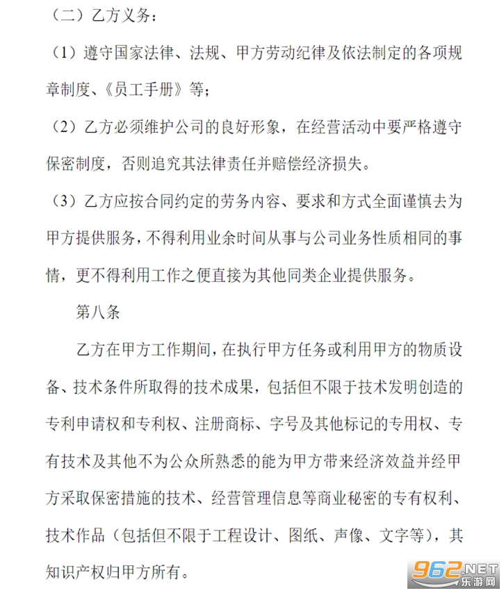(二)乙方义务: