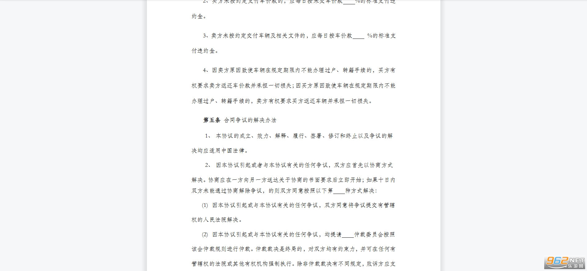 3、卖方未按约定交付车辆及相关文件的,应每日按车价款 %的标准支付违约金。