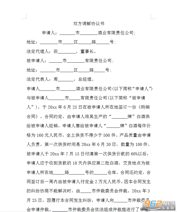 双方调解协议书2