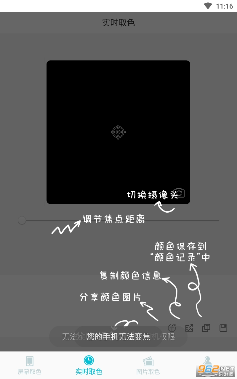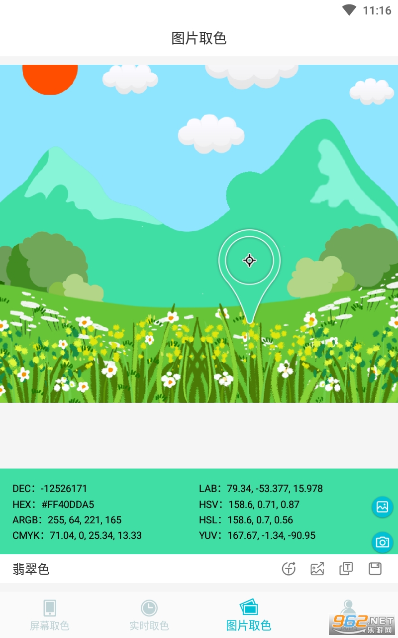 2.开源,简单易用的取色器,可选择图片后取色或拍摄相片后取色。