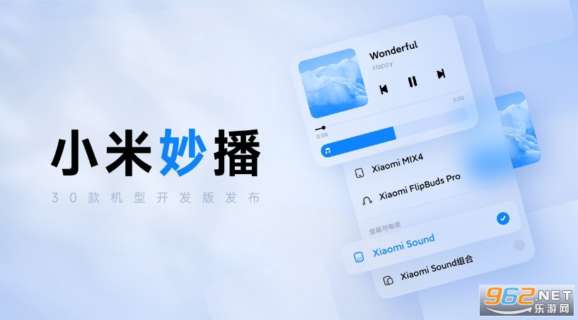 小米妙播可实现智能设备间无缝接力音乐,将手机或平板上的音乐串流到蓝牙耳机、音箱等设备,同步播放音乐,即便手机或平板设备打电话、玩游戏也不会影响音乐播放。